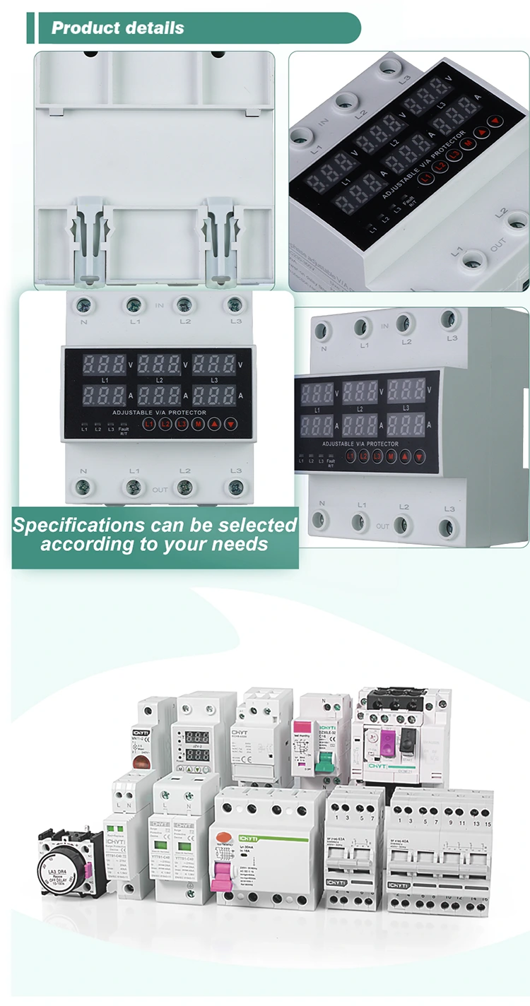 Mereka datang dengan paparan digital dan dibuat menggunakan komponen elektronik modular yang diimport, sehingga menawarkan kebolehpercayaan dan prestasi yang tinggi. Dalam kes -kes voltan yang tidak normal seperti overvoltage, undervoltage, atau turun naik grid, pelindung boleh secara automatik dan cepat memotong kuasa, dan kemudian memulihkannya apabila voltan kembali normal.