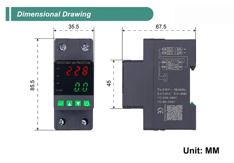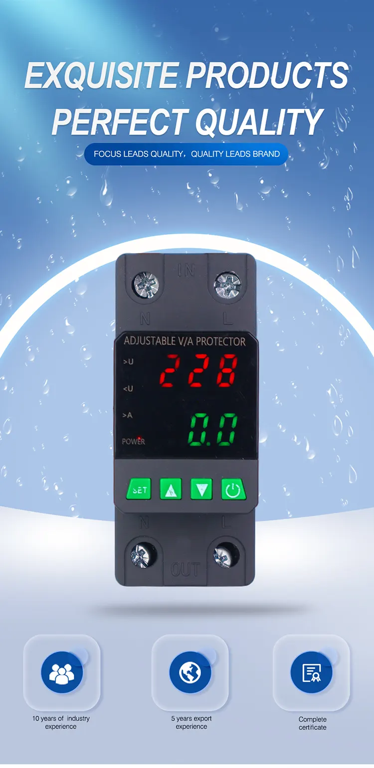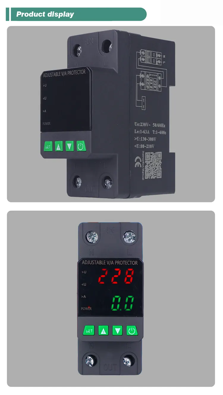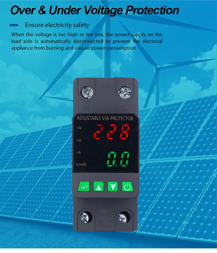 Dilengkapi dengan paparan digital dan dihasilkan dengan komponen elektronik modular yang diimport, ia mempunyai kebolehpercayaan dan prestasi yang tinggi. Pelindung secara automatik dan cepat memotong bekalan kuasa semasa voltan yang tidak normal (seperti overvoltage, undervoltage, atau turun naik grid) dan mengembalikan bekalan kuasa selepas voltan kembali normal.
